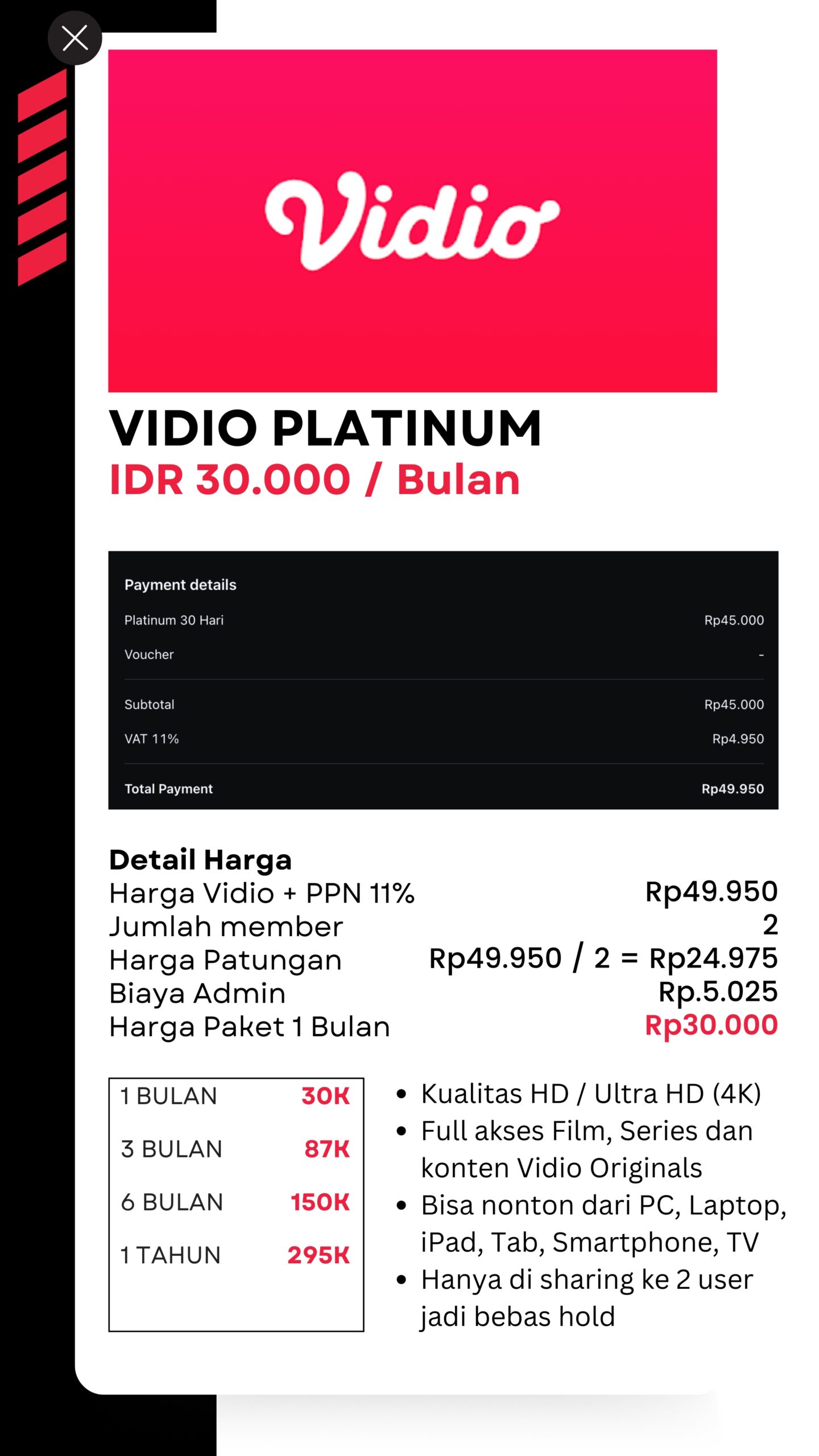 Joinakun.id memberikan harga yang transparan dan tetap legal mengikuti aturan dari Digital Streaming. Jadi jika ada yang lebih murah dan tidak masuk akal jika dihitung. Kalian harus berhati-hati bisa jadi itu akun ILEGAL atau sewaktu-waktu akun tersebut tidak bisa digunakan